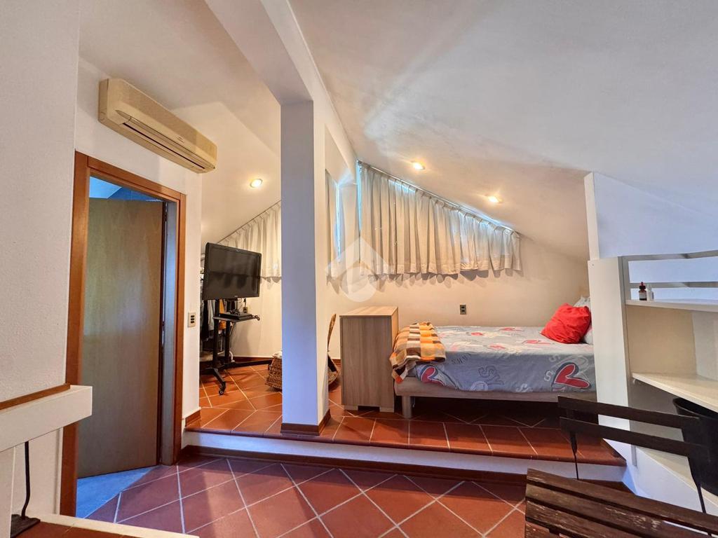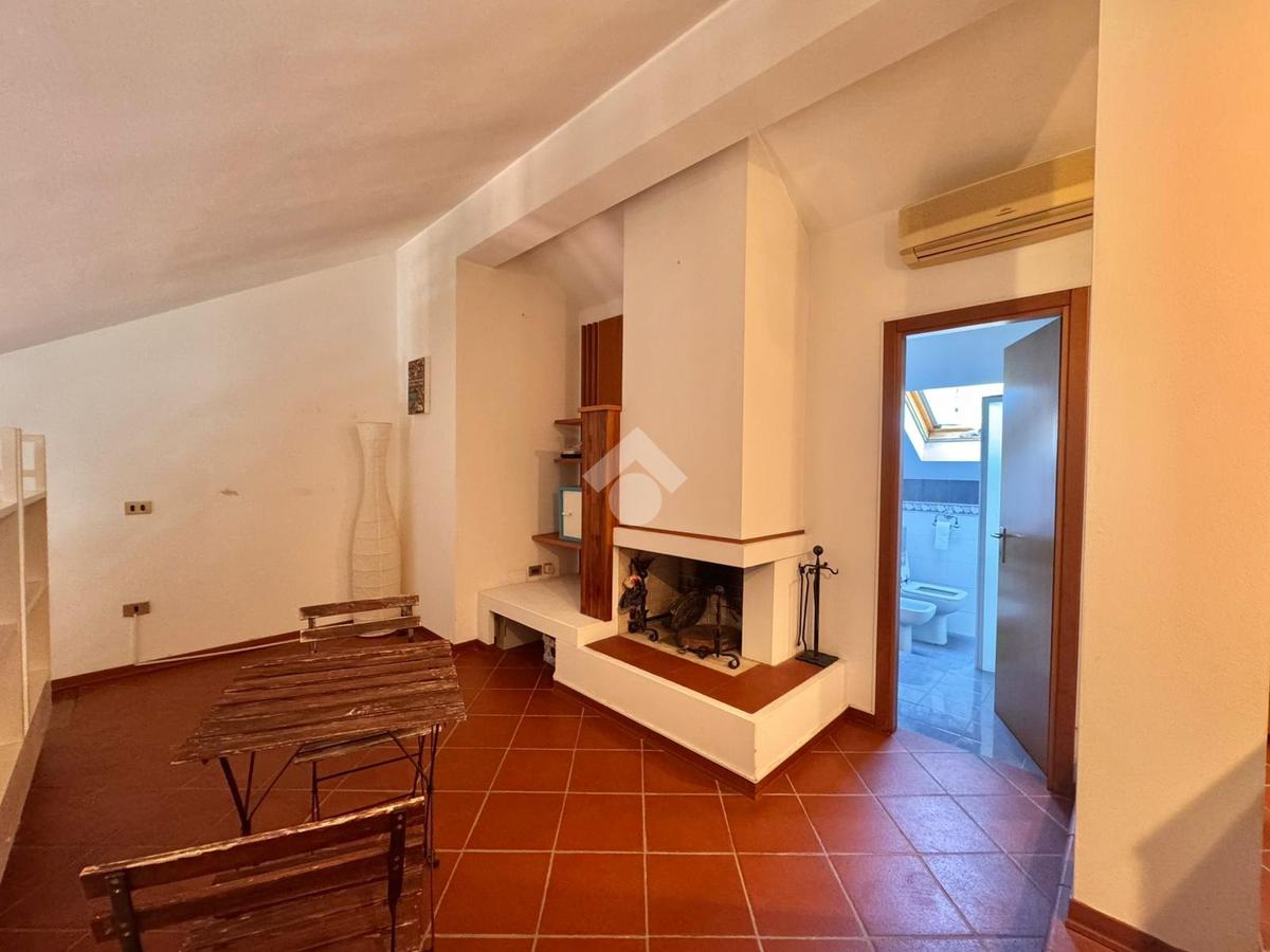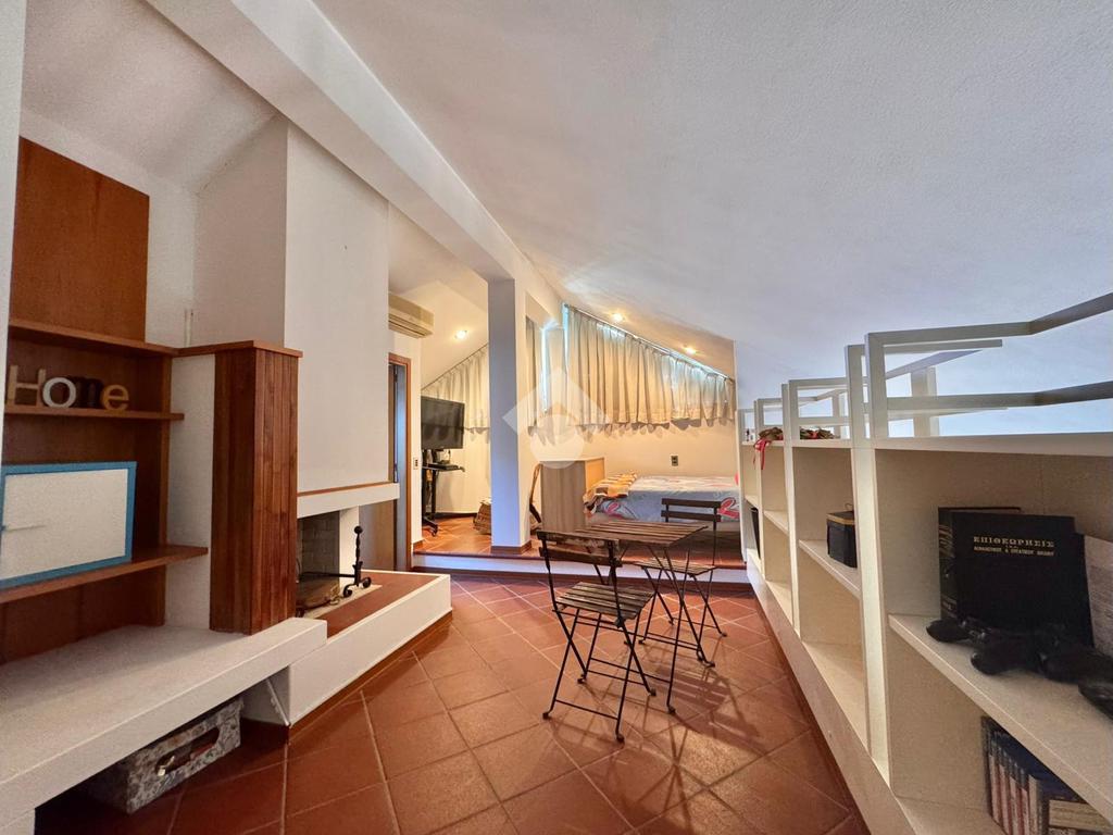 Al piano superiore si trova una mansarda con camino spaziosa, ideale come seconda camera o studio, con bagno finestrato con doccia.