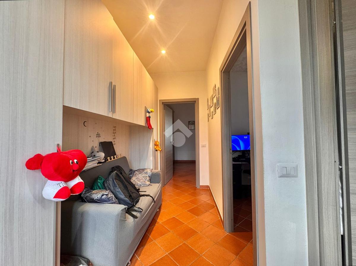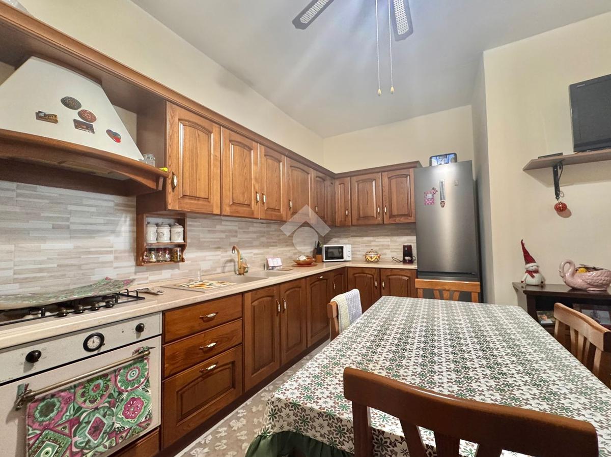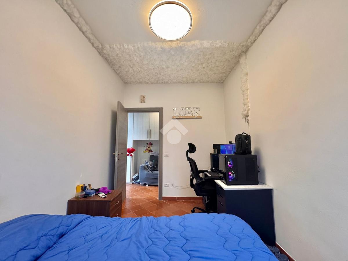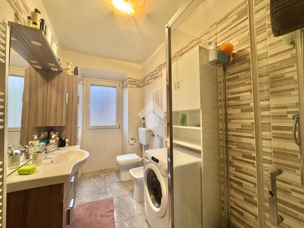 La cucina è abitabile e ben organizzata, ideale per la vita quotidiana, mentre la zona notte comprende una camera matrimoniale, una camera media e un bagno finestrato con doccia. È presente inoltre un comodo bagno di servizio e un ampio disimpegno, attualmente attrezzato con armadio guardaroba, che contribuisce a rendere gli spazi funzionali e ben distribuiti.