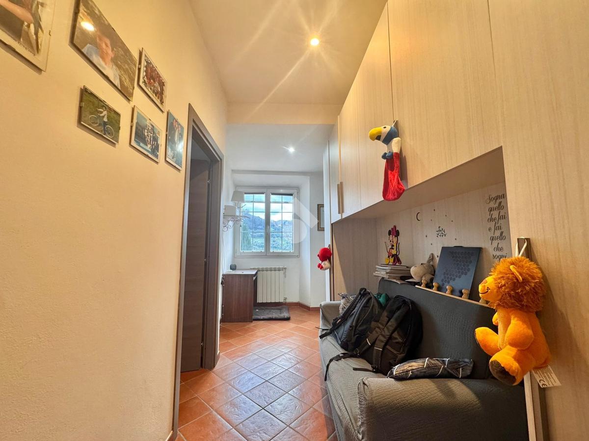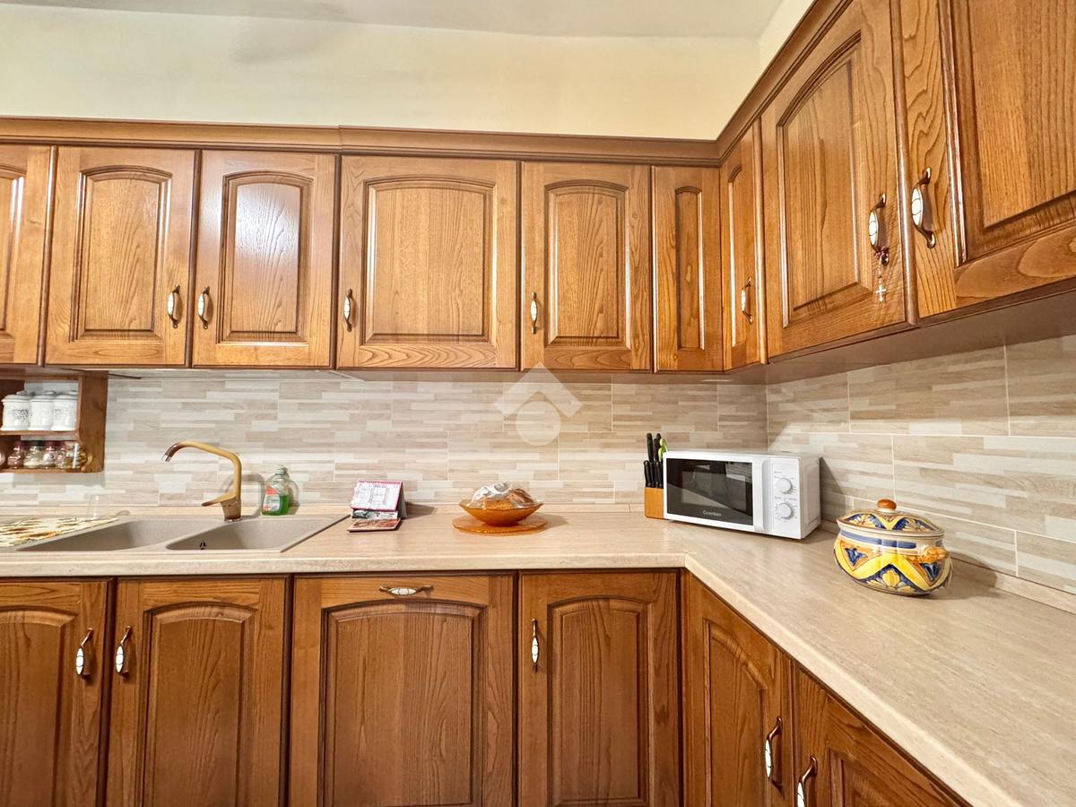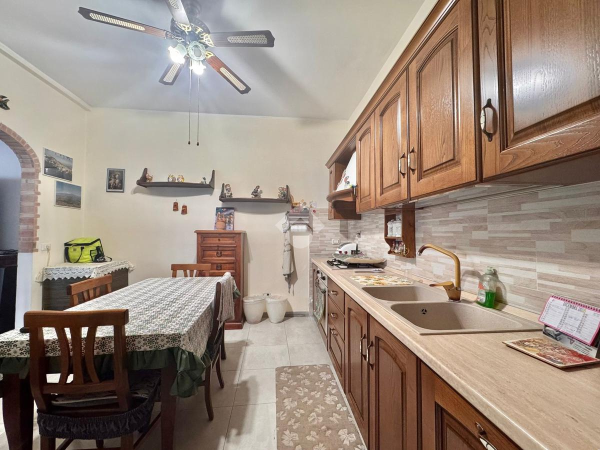 La cucina è abitabile e ben organizzata, ideale per la vita quotidiana, mentre la zona notte comprende una camera matrimoniale, una camera media e un bagno finestrato con doccia. È presente inoltre un comodo bagno di servizio e un ampio disimpegno, attualmente attrezzato con armadio guardaroba, che contribuisce a rendere gli spazi funzionali e ben distribuiti.