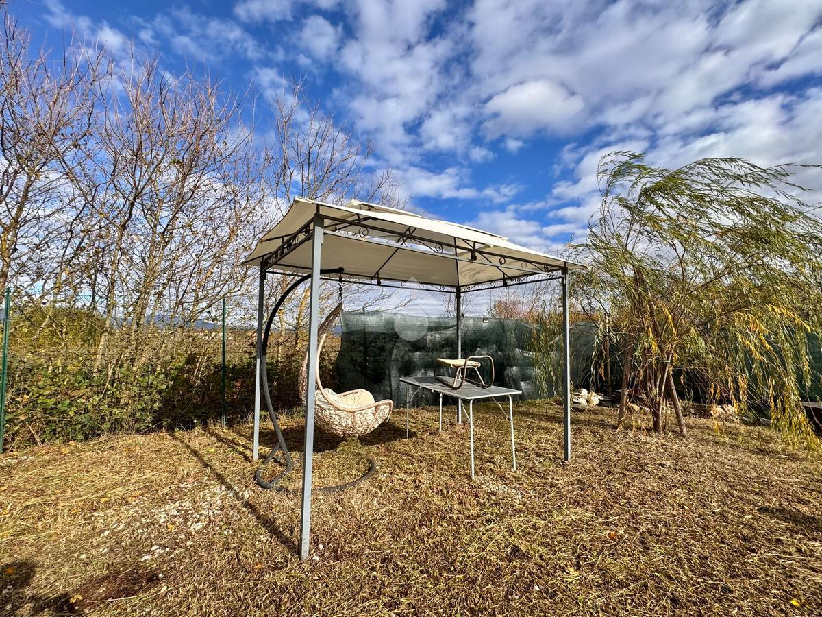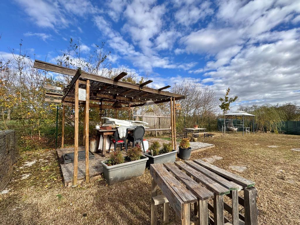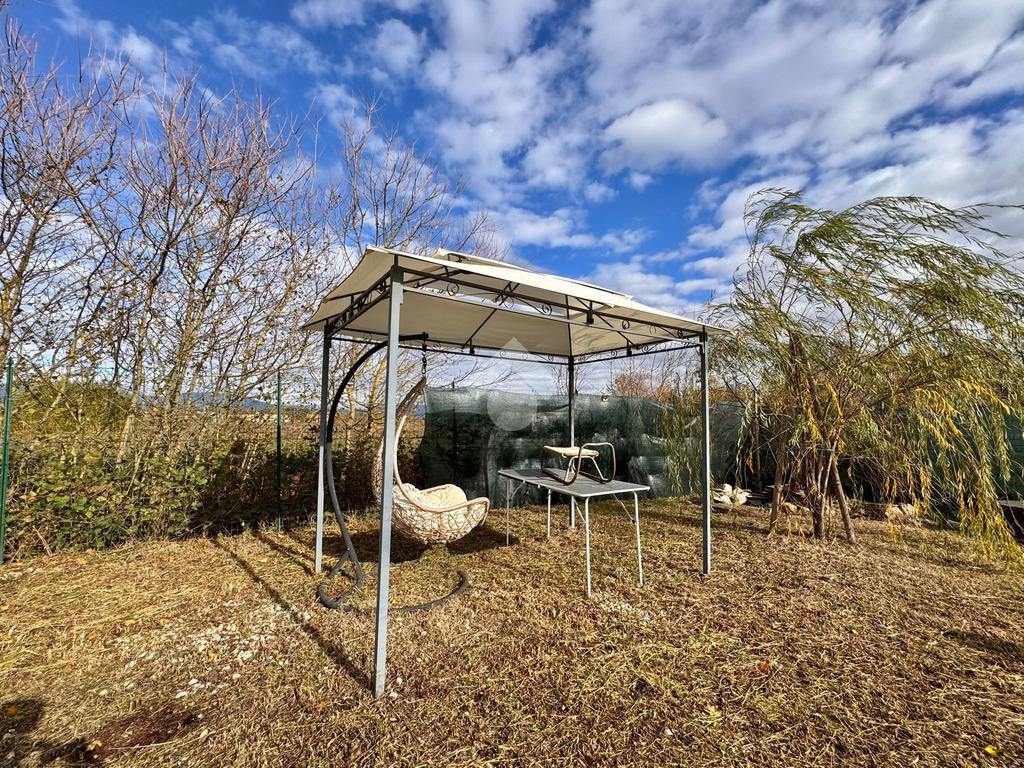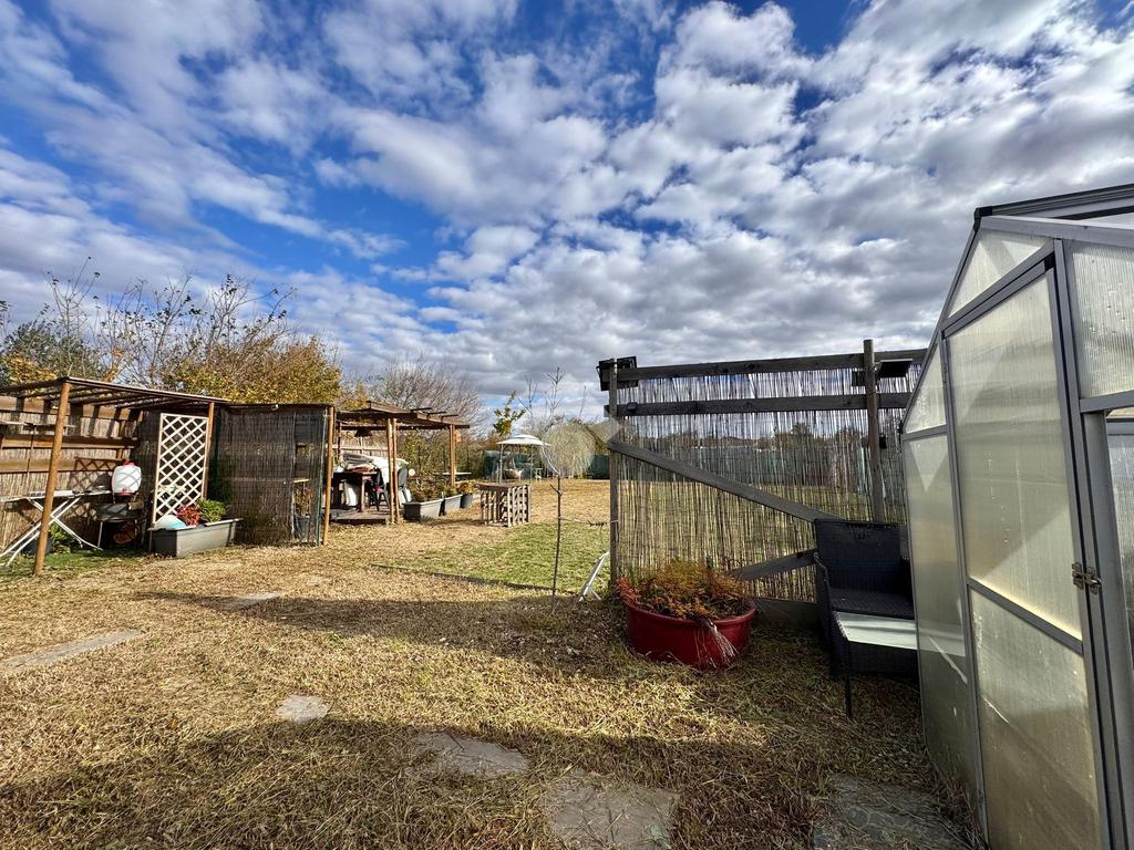 All’interno del terreno è presente una struttura in legno già predisposta per ospitare un tavolo da esterno, ottima per realizzare una zona pranzo/cena e un’area dedicata al barbecue. Lo spazio aperto consente inoltre l’installazione di una piscinetta stagionale.