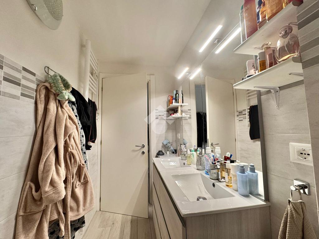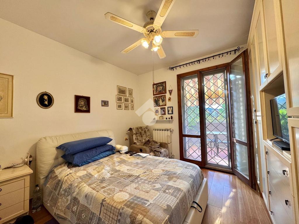 La camera matrimoniale gode dell’accesso diretto a un terrazzo abitabile ideale per momenti di relax all’aperto. Dalla zona giorno una porta finestra conduce al giardino privato, dove è possibile mangiare comodamente all’esterno durante la bella stagione.