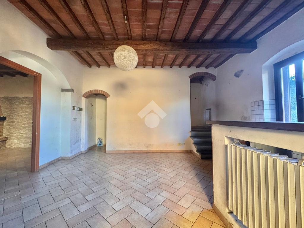 Al piano terra troviamo una cucina abitabile, luminosa e funzionale, un soggiorno accogliente con camino e con suggestive travi in legno a vista che richiamano lo stile rustico toscano, oltre a un pratico bagno di servizio ricavato nel sottoscala.